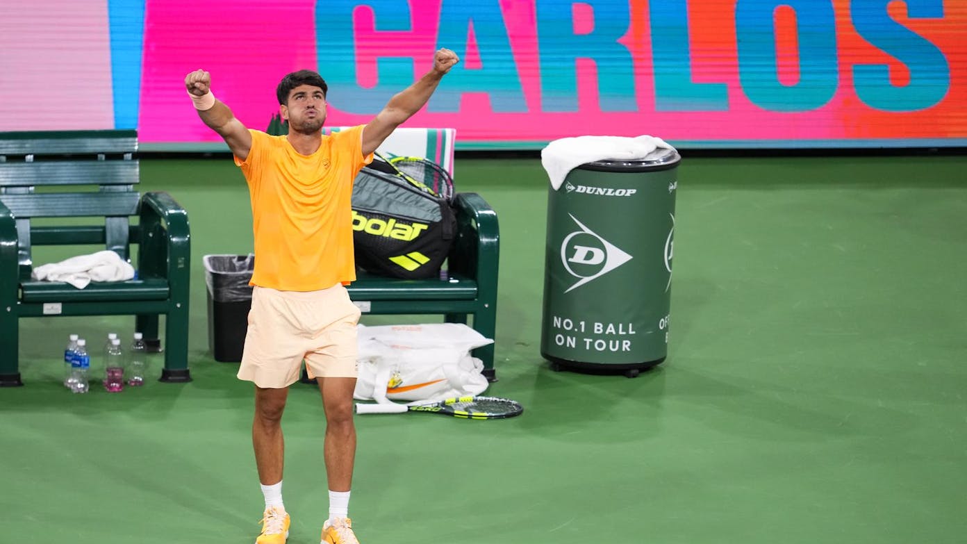 Nearly two hours later, play resumed, and Alcaraz went on to score the win en route to his second Indian Wells title.