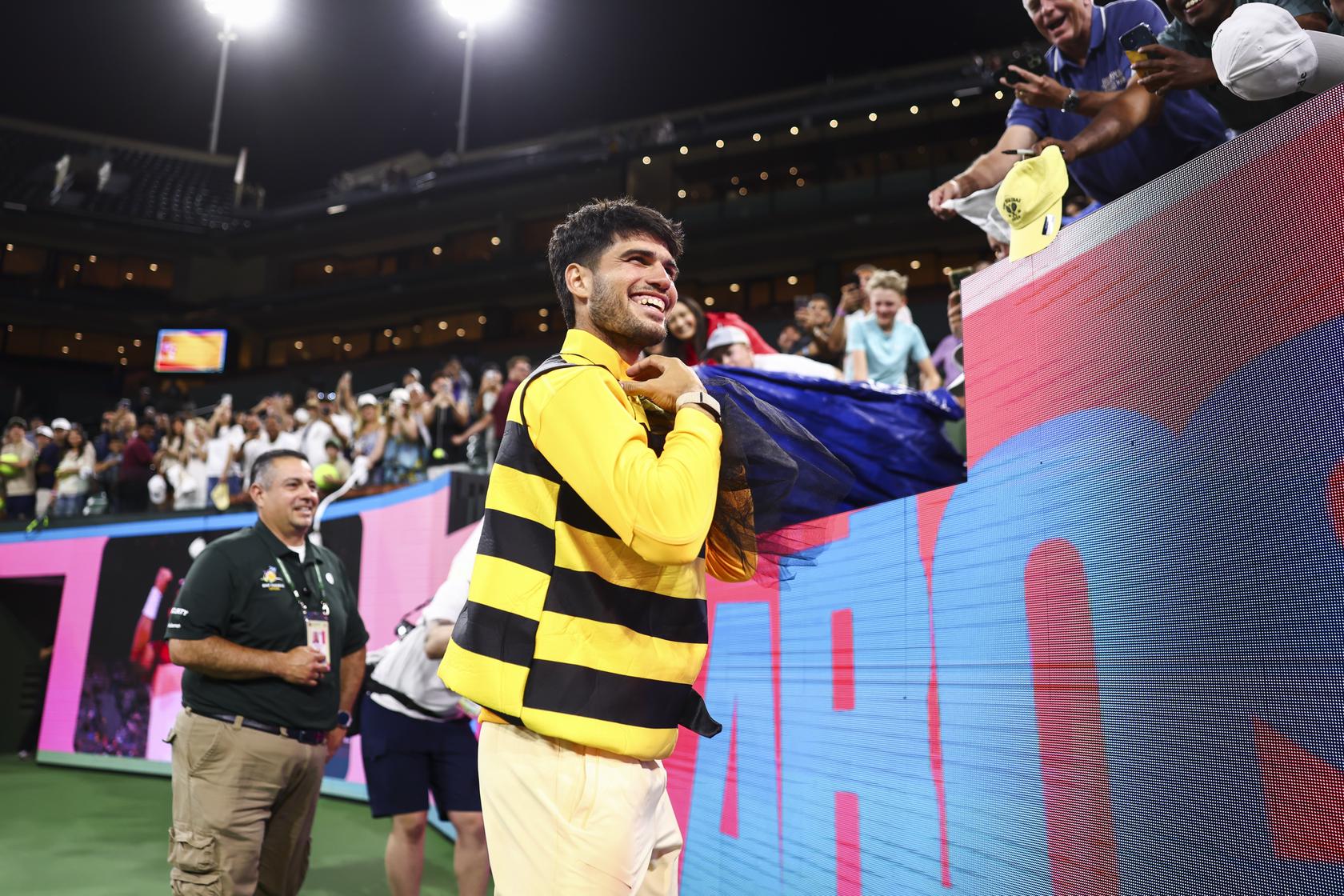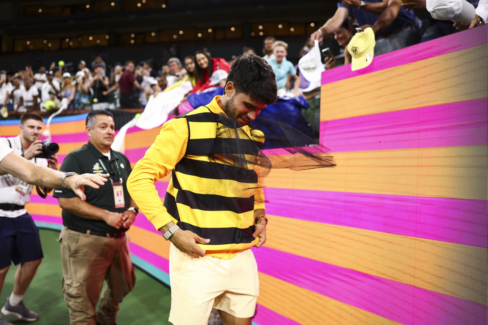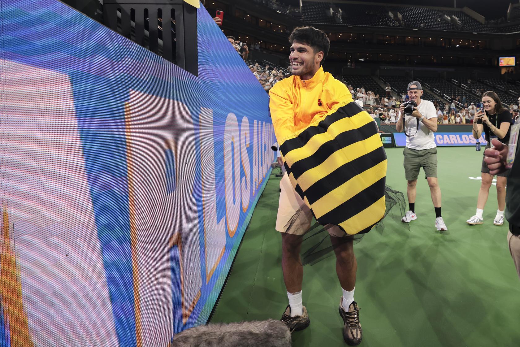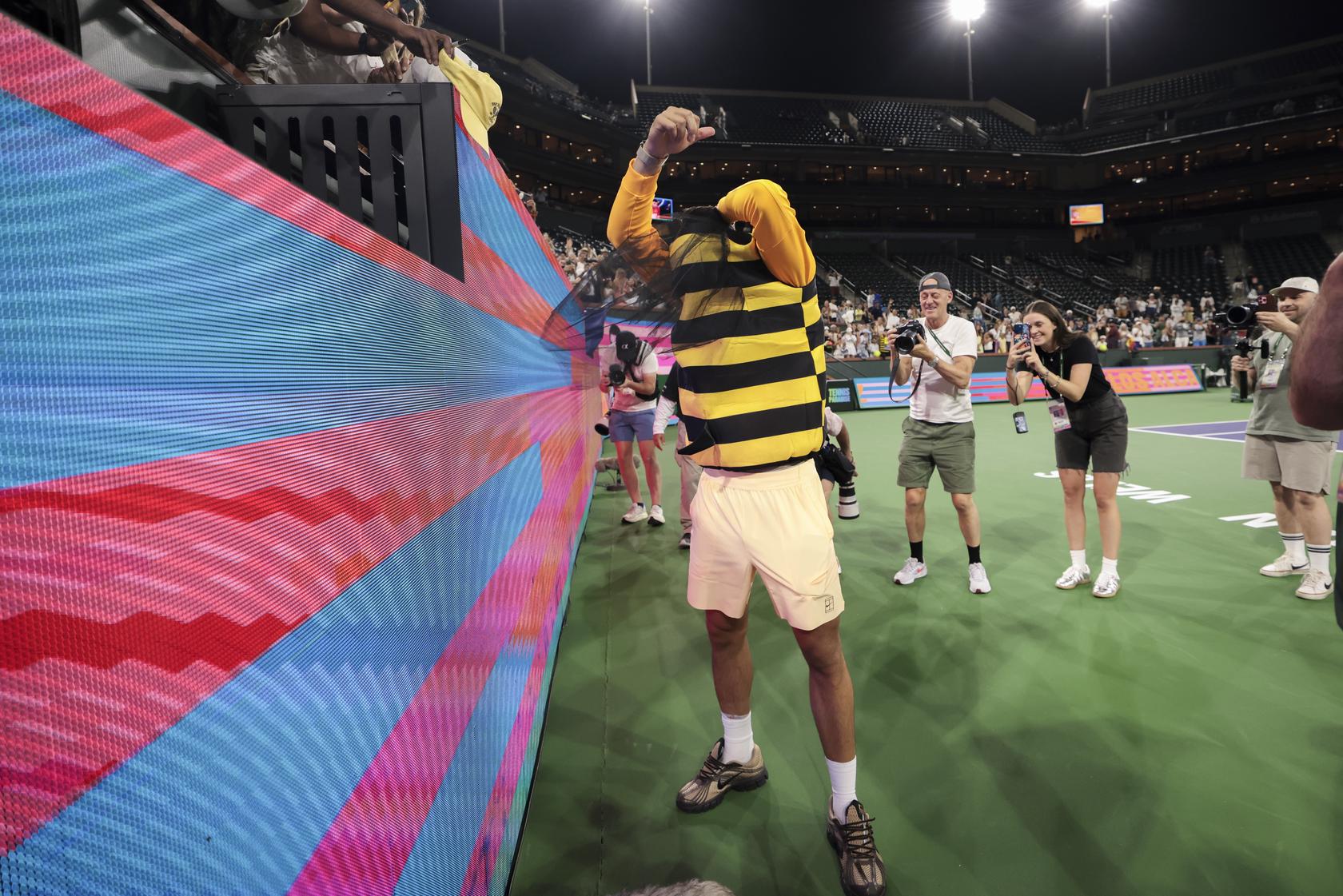 After defeating Cameron Norrie to reach the semifinals, the Spaniard made his way toward a cluster of fans behind the baseline who had spent the evening buzzing with energy in full bee costumes — a playful nod to the now-famous bee incident from the 2024 tournament.