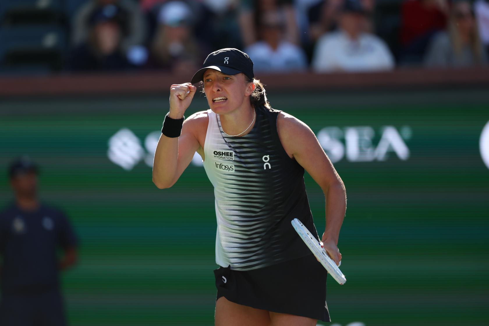 ELENA RYBAKINA: Well, I was a little bit rushing on the serve since it was windy. So I was just trying to play point at a time and not focus so much on the score, because in these conditions, anything can change quickly. Yeah, it's slow courts, quite heavy balls. It's not easy to move them.
