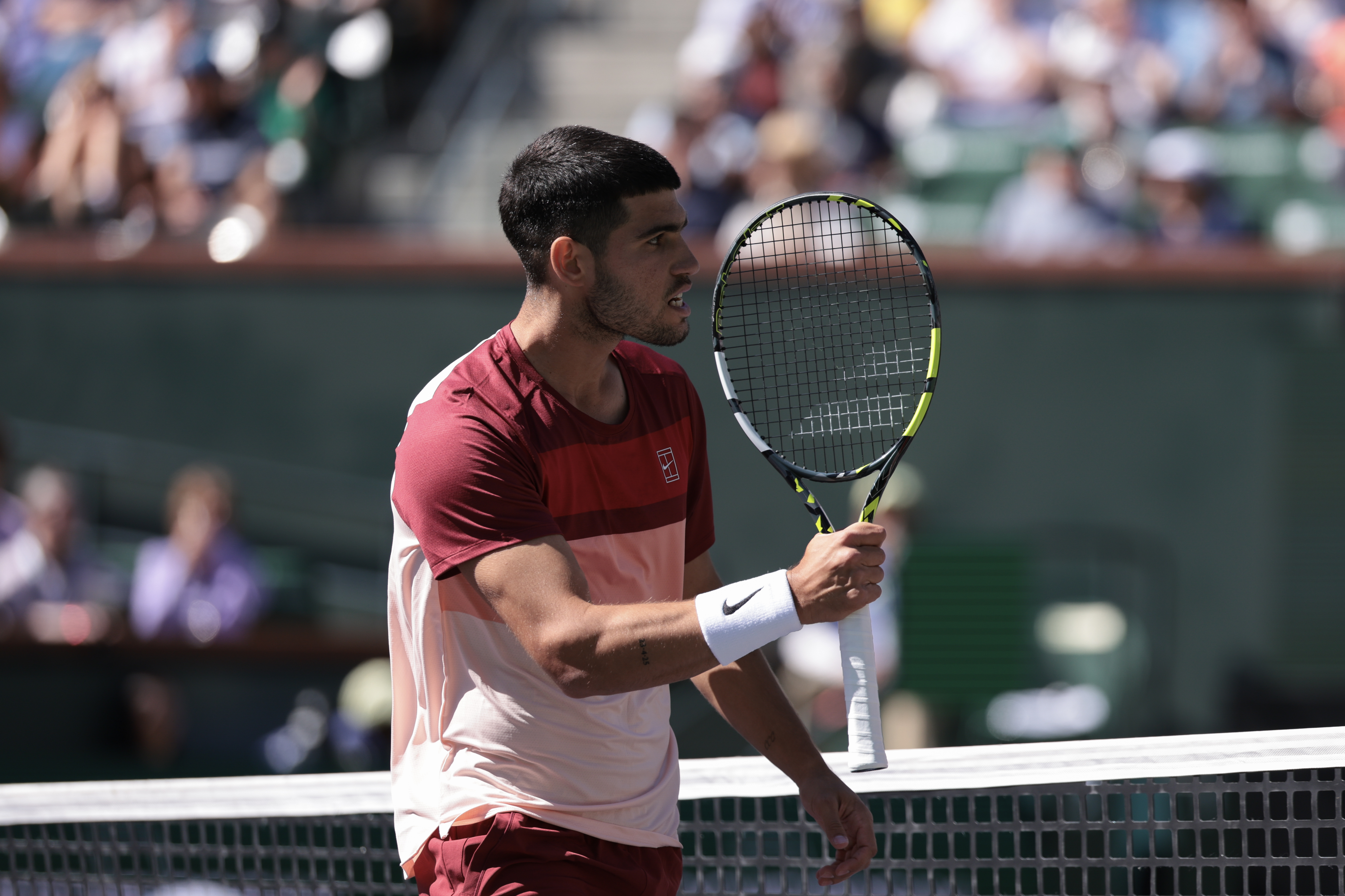 Davis returned to the Indian Wells Tennis Garden for the coin toss in Alcaraz’s match against Quentin Halys on Saturday. His emergency bee keeping services weren’t needed but Alcaraz began the defense of his repeat with plenty of sting thanks to a 6-4, 6-2 win. The routine looking score was a fair reflection of proceedings at a Stadium 1 bathed in sunshine, despite some tension from Alcaraz.