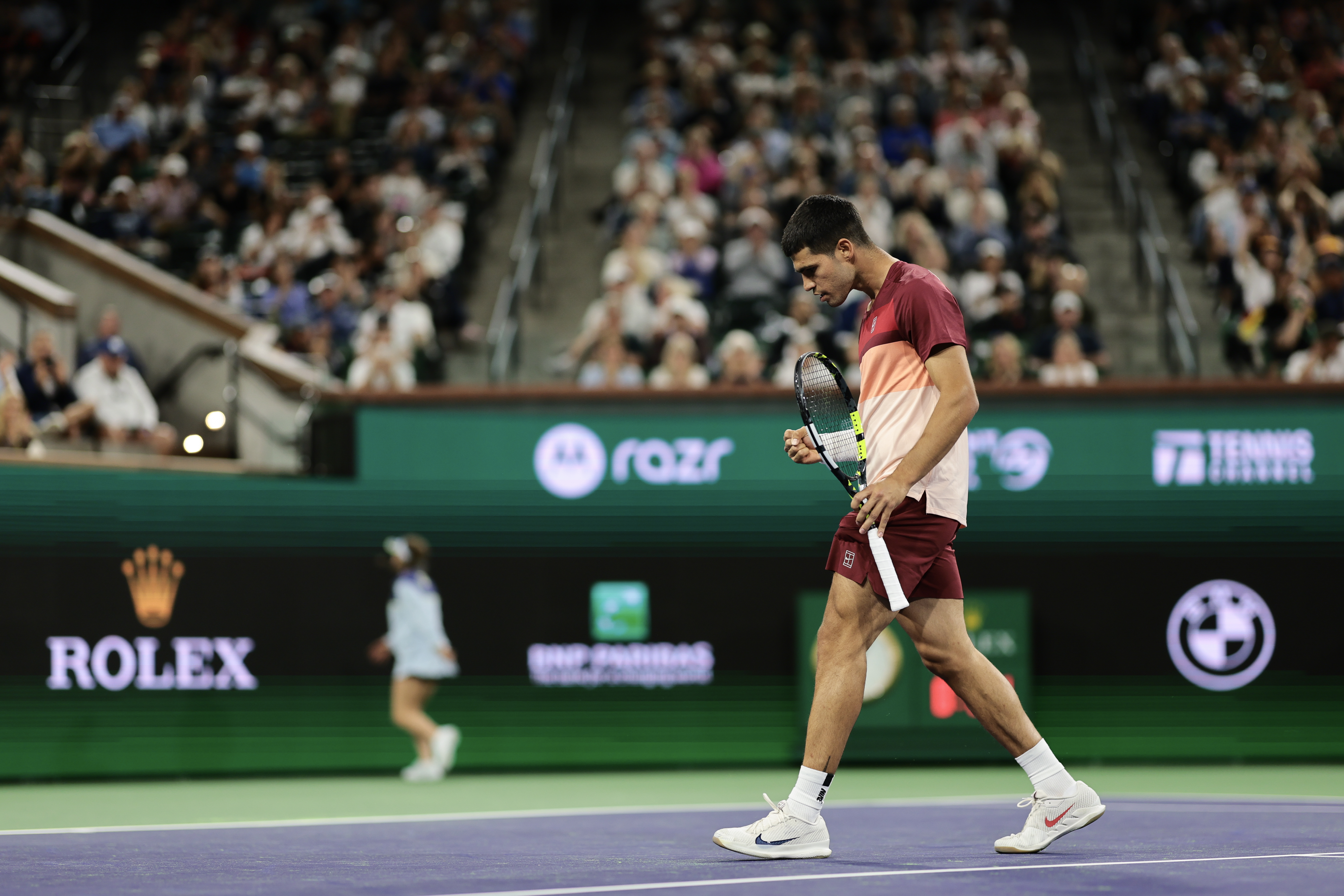 Get TicketsDefending two-time champion Carlos Alcaraz continues to put his best foot forward at Indian Wells. The No. 2-seeded Spaniard produced scintillating tennis early, then weathered a late push from surging Canadian Denis Shapovalov to earn a 6-2 6-4 victory that stretches his BNP Paribas Open win streak to 14 victories.
