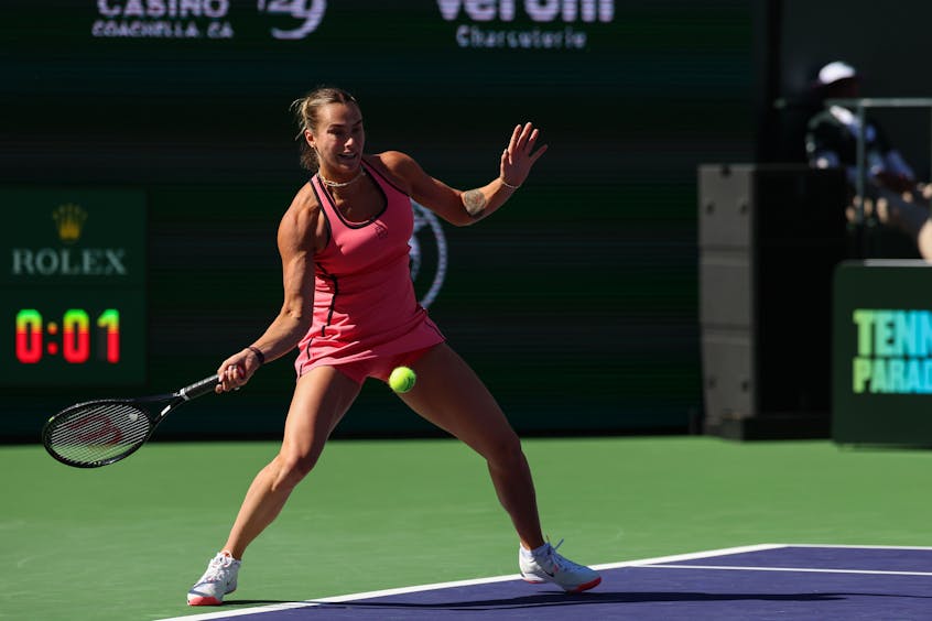 Sabalenka has been sporting some jewelry herself in the desert, competing with a diamond ring after getting engaged to Georgios Frangulis in Indian Wells.