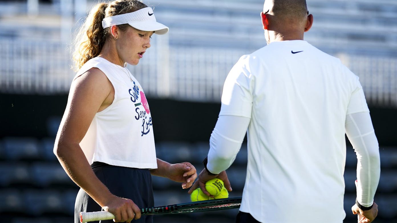Just before lunch, Olympic gold medalist Zheng Qinwen took to Practice Court 2 with a new voice in her corner: Marcos Baghdatis, the highest-ranked tennis player in Cyprus’ history. The former World No. 8 is currently working with Zheng on a trial basis.