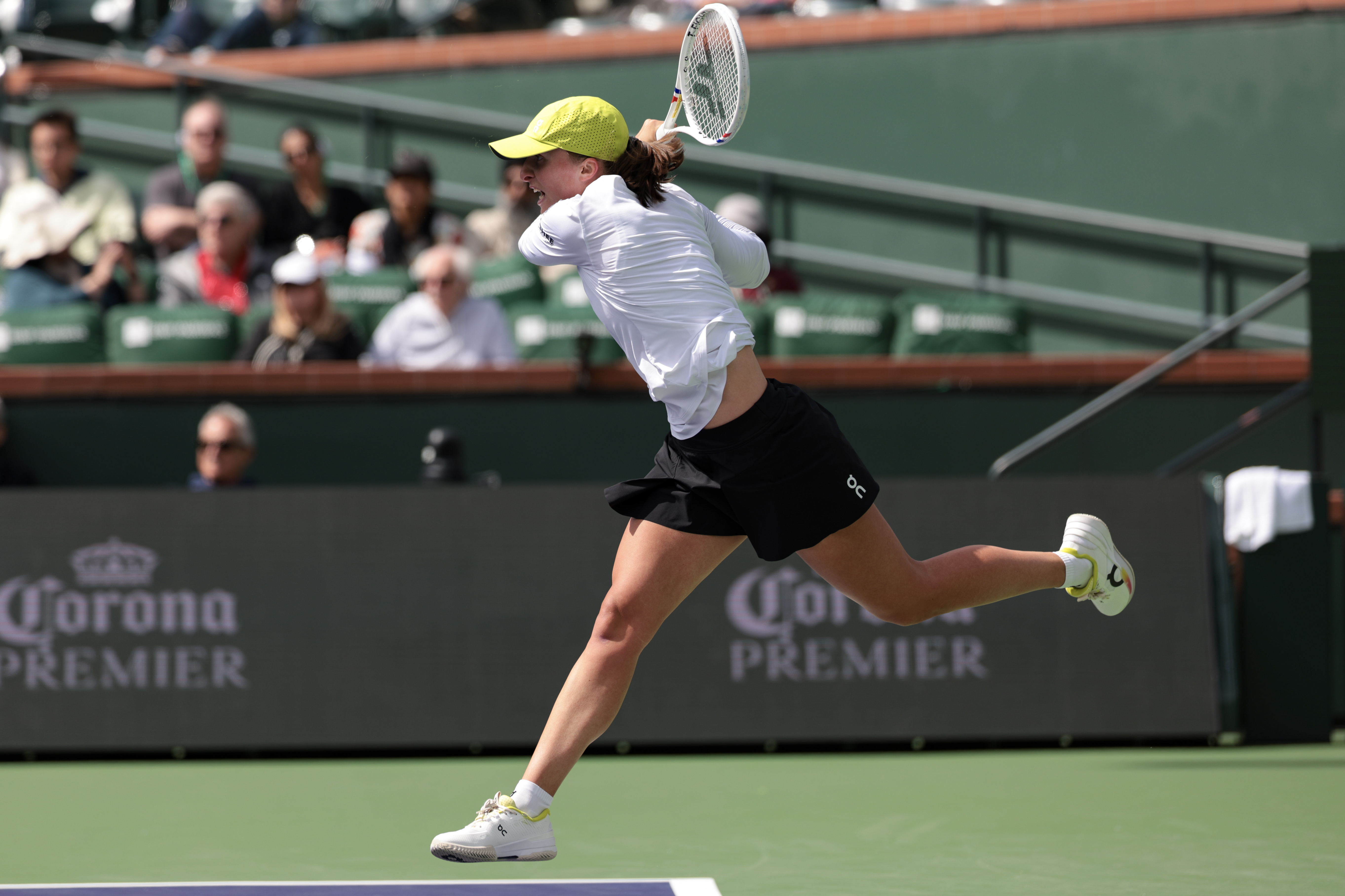 Swiatek wasn’t a fan of the balls used in Dubai, saying this week in Indian Wells that they felt like “potatoes.” But as tricky as the conditions in Indian Wells have been this edition — with fluctuating temperatures and heavy winds — the five-time Grand Slam champion handled them superbly well. She was already comfortable with the higher bouncing hard court. Swiatek only dropped 12 games en route to the semifinals.