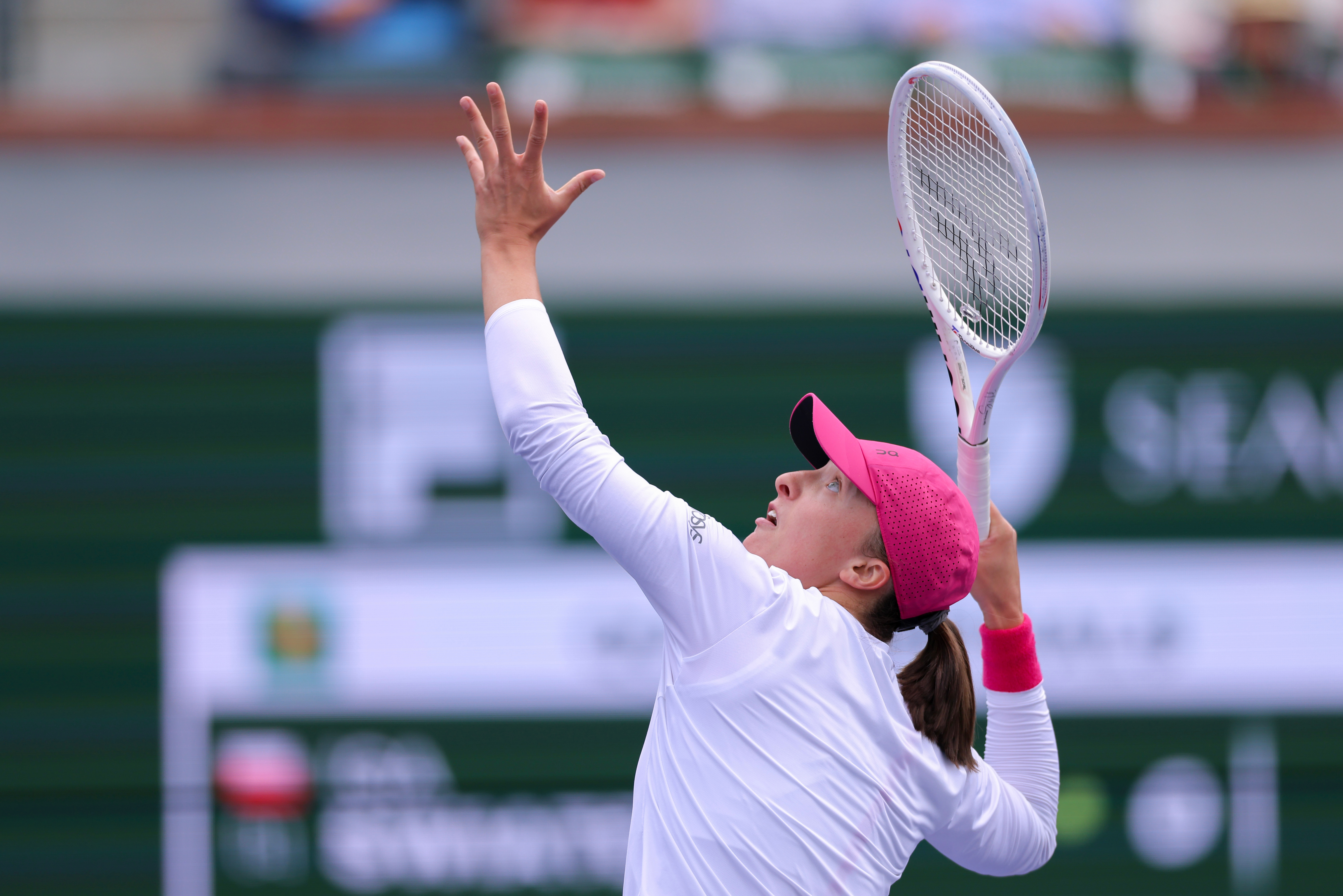 The 2011 BNP Paribas Open champion, making her first appearance in the California desert since 2019, battled tooth-and-nail with Swiatek in the opening set, and even led by a break for a spell, at 4-1.
